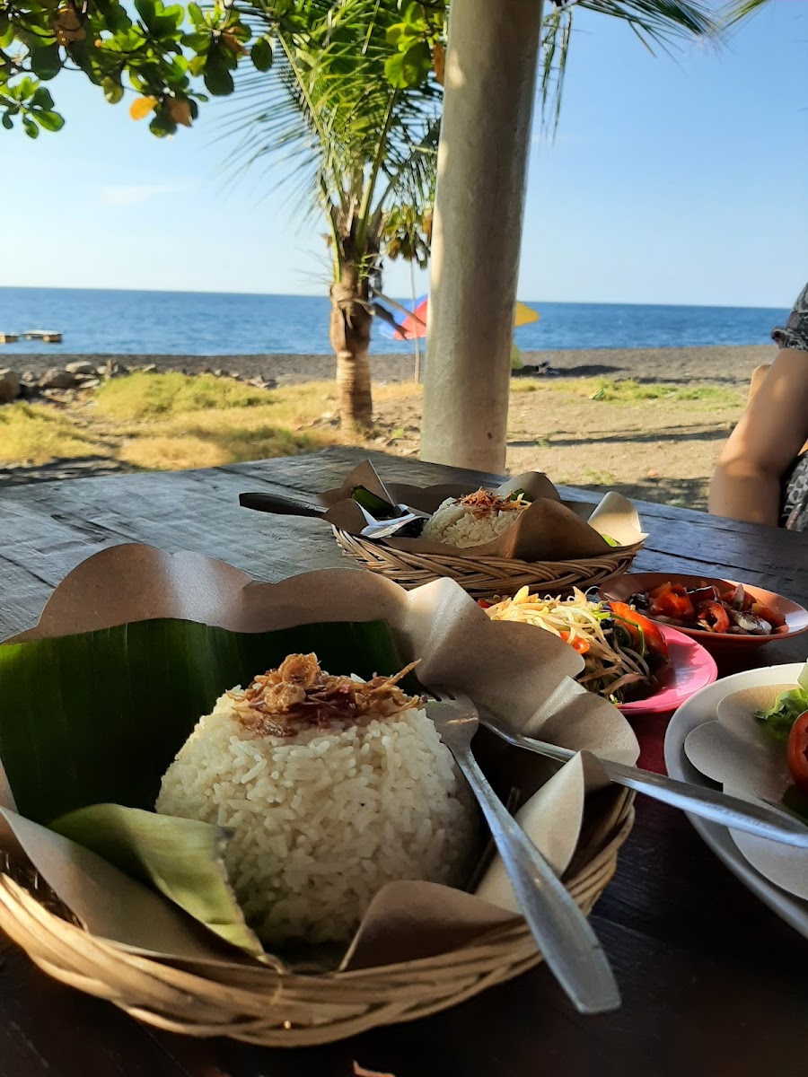 This Warung is located to a calm small black beach with good view. The food was delicious we tried Mahi Mahi grilled fish. We are thankful to Made cheng for bringing us here for a quick bite.